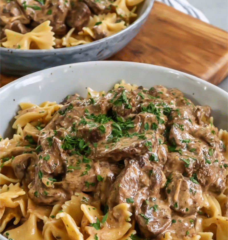🍄 Classic Beef Stroganoff with Bow-Tie Pasta 🍝