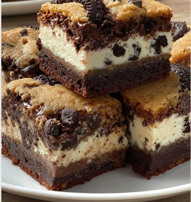 Indulge in the decadent delight of a fusion dessert that combines the rich flavors of brownies, cheesecake, and cookies into one irresistible treat. Layers of chewy cookies, fudgy brownies, and creamy cheesecake create a symphony of flavors and textures that will tantalize your taste buds.