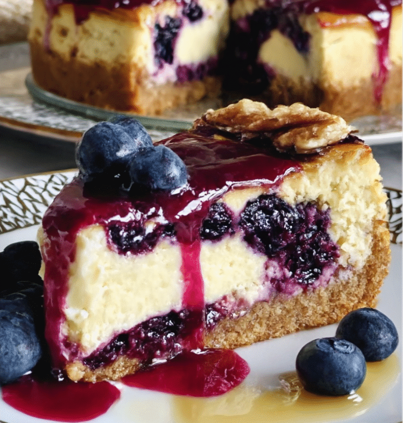 A decadent dessert that combines the creamy richness of cheesecake with the sweet and tangy flavor of fresh blueberries, creating a symphony of flavors that is sure to please your taste buds.