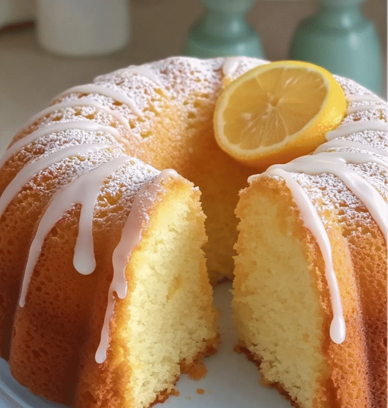 7. Drizzle the Sweet Citrus Glaze over the cooled cake and dust with confectioners’ sugar before serving.