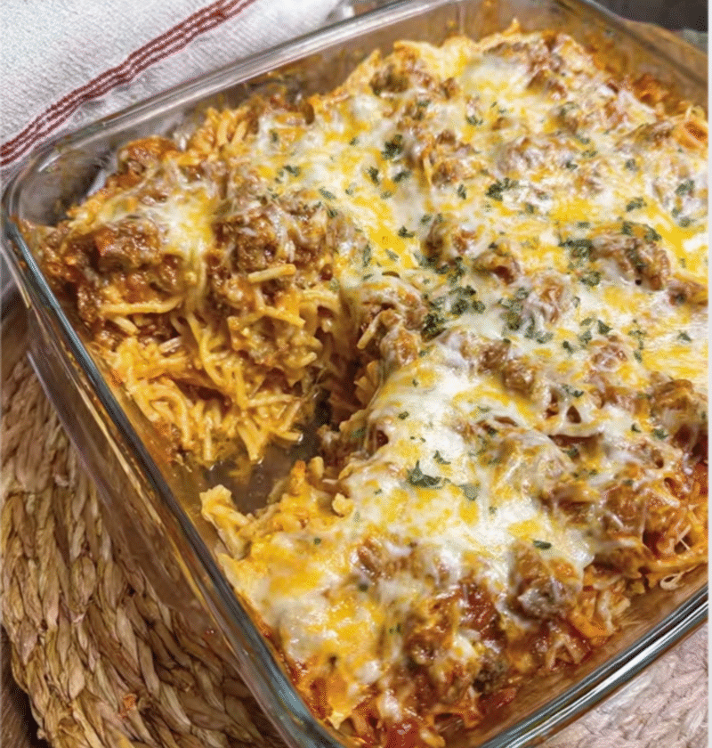 A delicious and hearty casserole featuring layers of spaghetti, creamy cheese mixture, flavorful meat sauce, and melted cheese topping. This ultimate comfort food is perfect for family gatherings or cozy weeknight dinners.