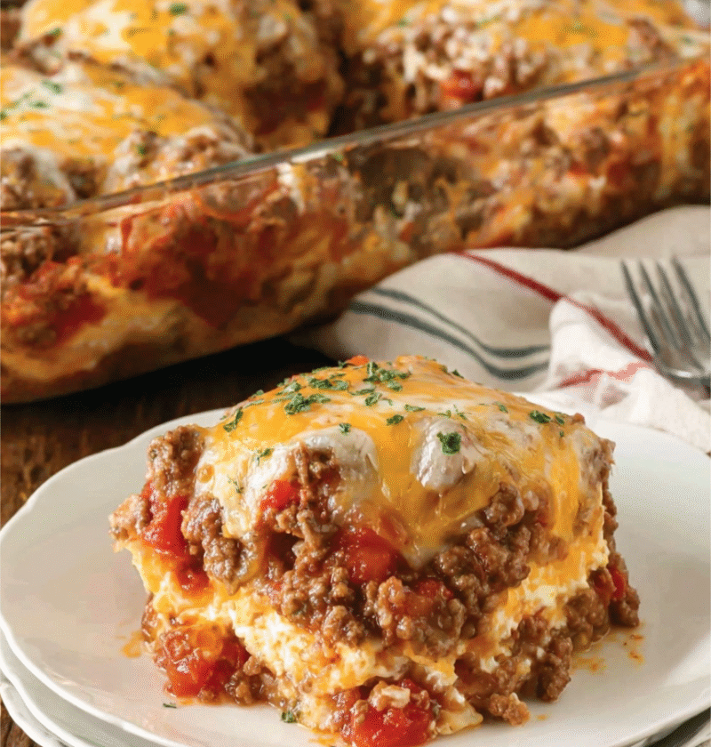 A flavorful tomato sauce forms the base of the casserole, infusing every bite with tangy goodness. You can use store-bought marinara sauce or make your own with herbs and spices.
